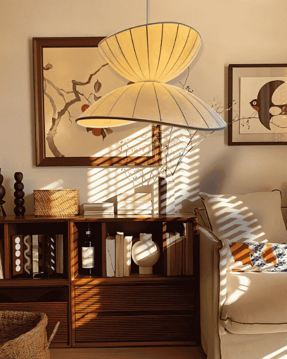 Le Papillon Lumineux | Elegante lampada a sospensione in seta Japandi