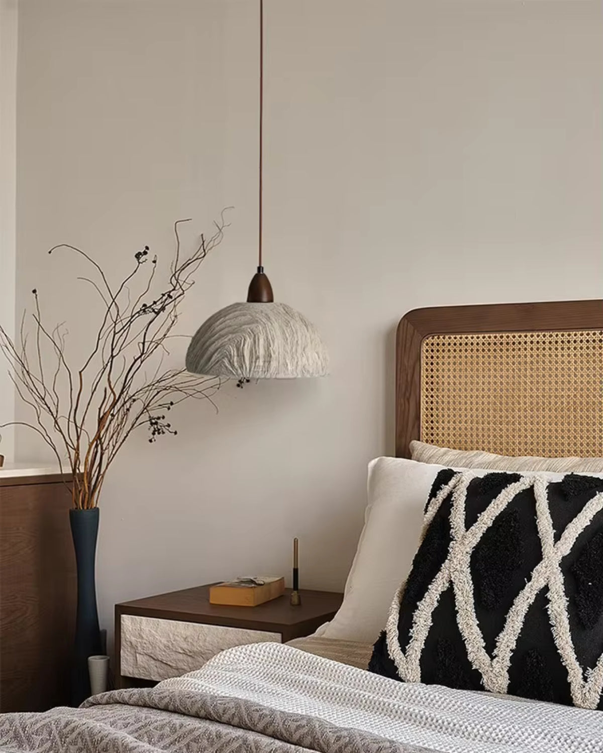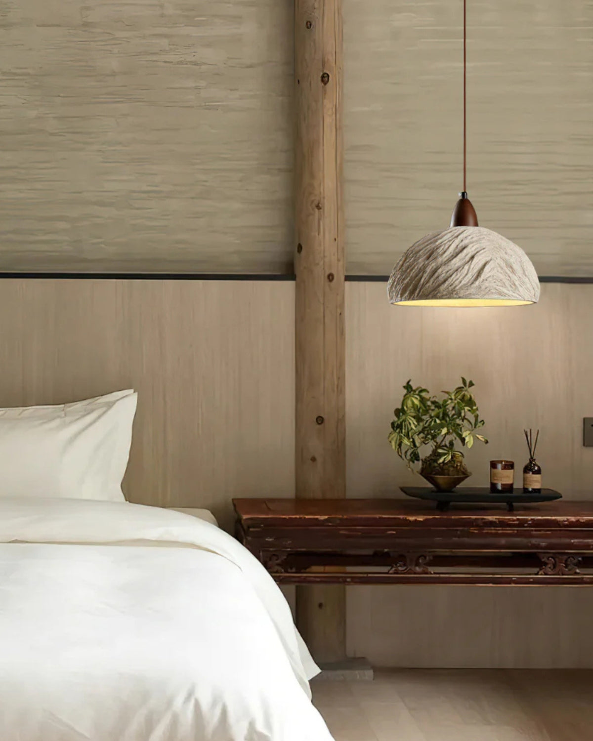 Ispirata alle texture organiche della roccia erosa dagli agenti atmosferici, Le Rocher Lumineux conferisce al vostro spazio un aspetto terroso e concreto. Il suo paralume a cupola, simile alla pietra, emana un fascino grezzo e naturale, completato da un elegante accento in legno, creando un'estetica equilibrata che si adatta sia agli interni rustici che a quelli contemporanei.