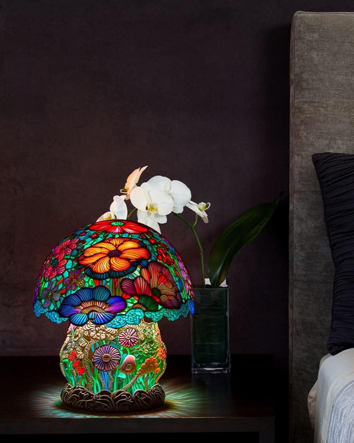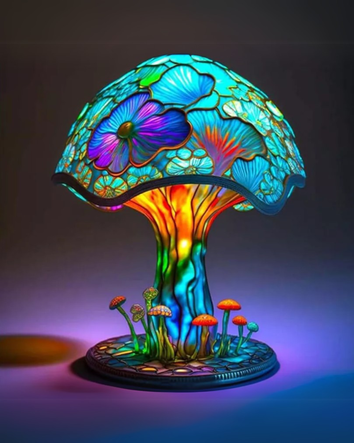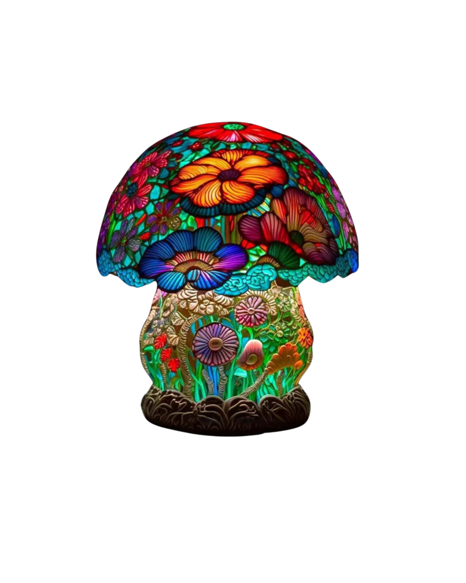 La Lumière Fongique è una splendida lampada in vetro colorato realizzata a mano che dona un tocco di magica eleganza a qualsiasi ambiente. Caratterizzata da vivaci motivi floreali e di funghi multicolori, l'intricato paralume in vetro irradia una luce soffusa e avvolgente, creando un'atmosfera serena. La base, splendidamente dettagliata, riproduce la crescita naturale dei funghi, aggiungendo un tocco estroso al vostro arredamento. Perfetta per soggiorni, camere da letto o studi, questa lampada unisce l'arte ispirata alla natura a una lussuosa lavorazione artigianale, rendendola un'aggiunta senza tempo a qualsiasi spazio.