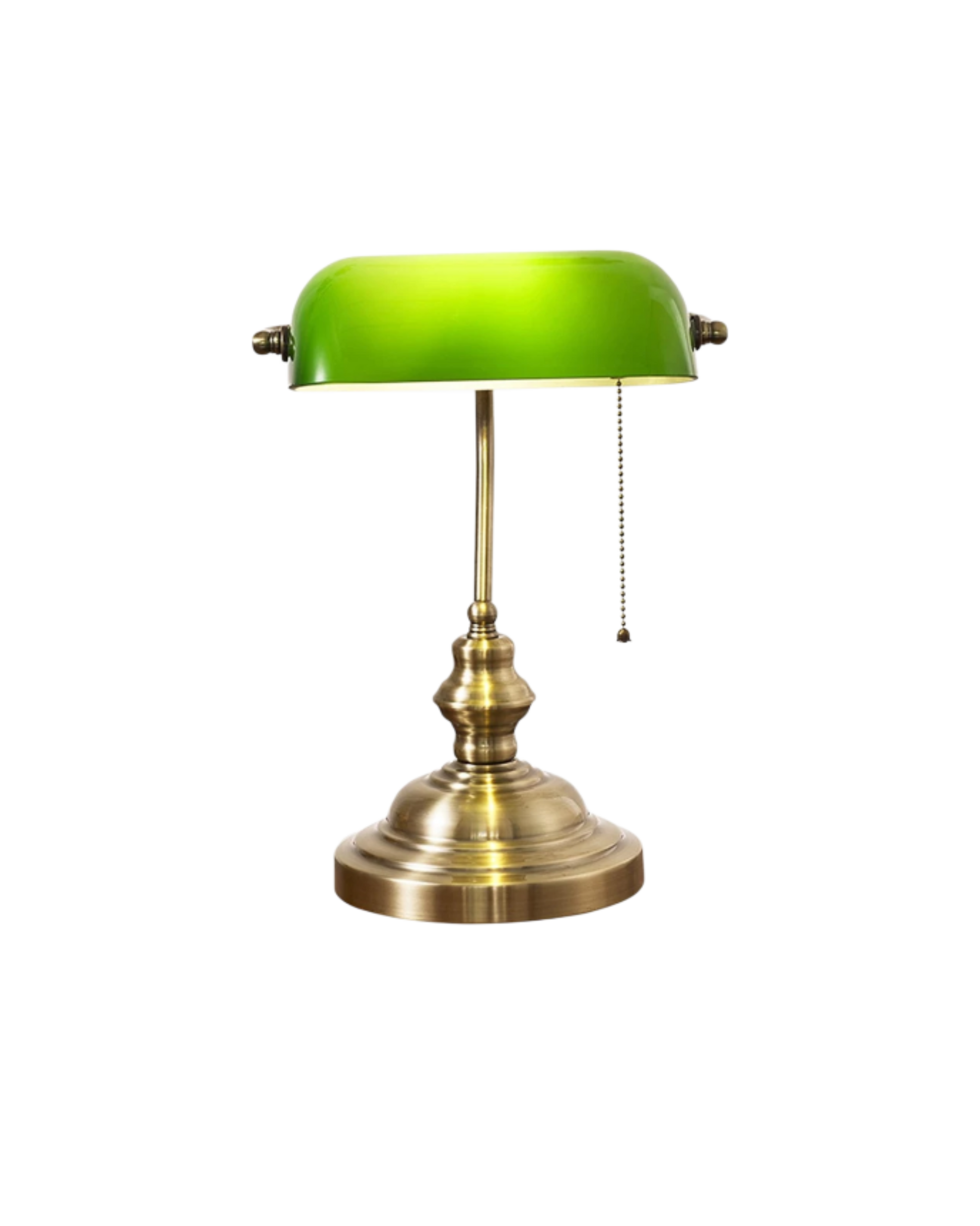 Il paralume in vetro verde della lampada diffonde una luce morbida e diffusa che valorizza l'ambiente di lavoro riducendo l'affaticamento degli occhi, rendendola ideale per attività che richiedono un'illuminazione mirata. Che tu stia leggendo, scrivendo o lavorando alla scrivania, la rilassante tonalità verde crea un'atmosfera rilassante, offrendo al contempo un'illuminazione eccellente. La tonalità unica del paralume in vetro riflette la luce in modo splendido, rendendola un punto focale straordinario in qualsiasi stanza.