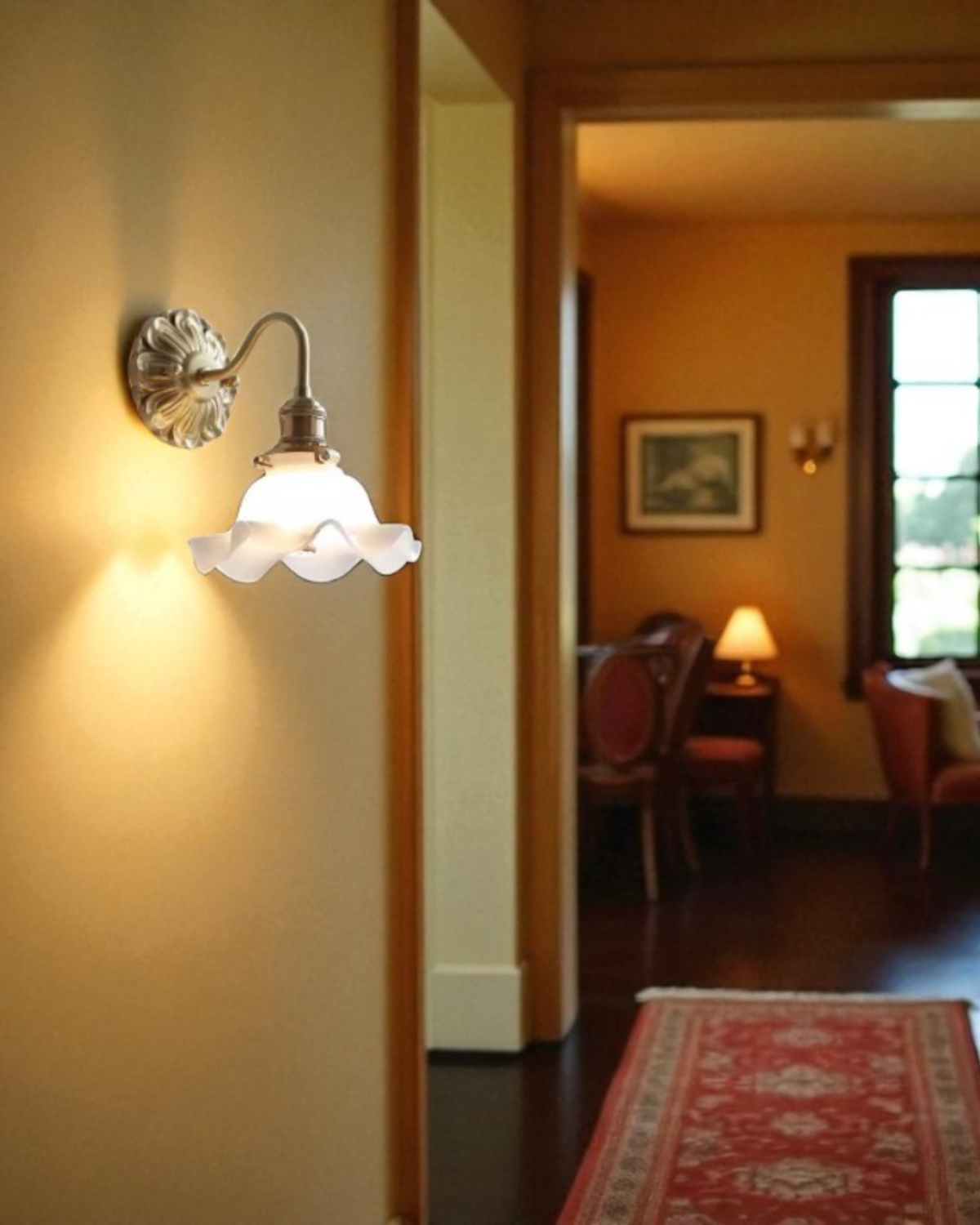 Abbraccia l'arte dell'illuminazione raffinata con La Fleur Élégante , una lampada da parete che armonizza il fascino vintage con una lussuosa raffinatezza. Il suo paralume in vetro scolpito di ispirazione floreale diffonde una luce delicata e calda, mentre la montatura in ottone decorato aggiunge un tocco di grandiosità che ricorda il classico design francese. Perfetta per corridoi, soggiorni o angoli intimi, questa lampada trasforma qualsiasi spazio in un'atmosfera di eleganza e serenità.