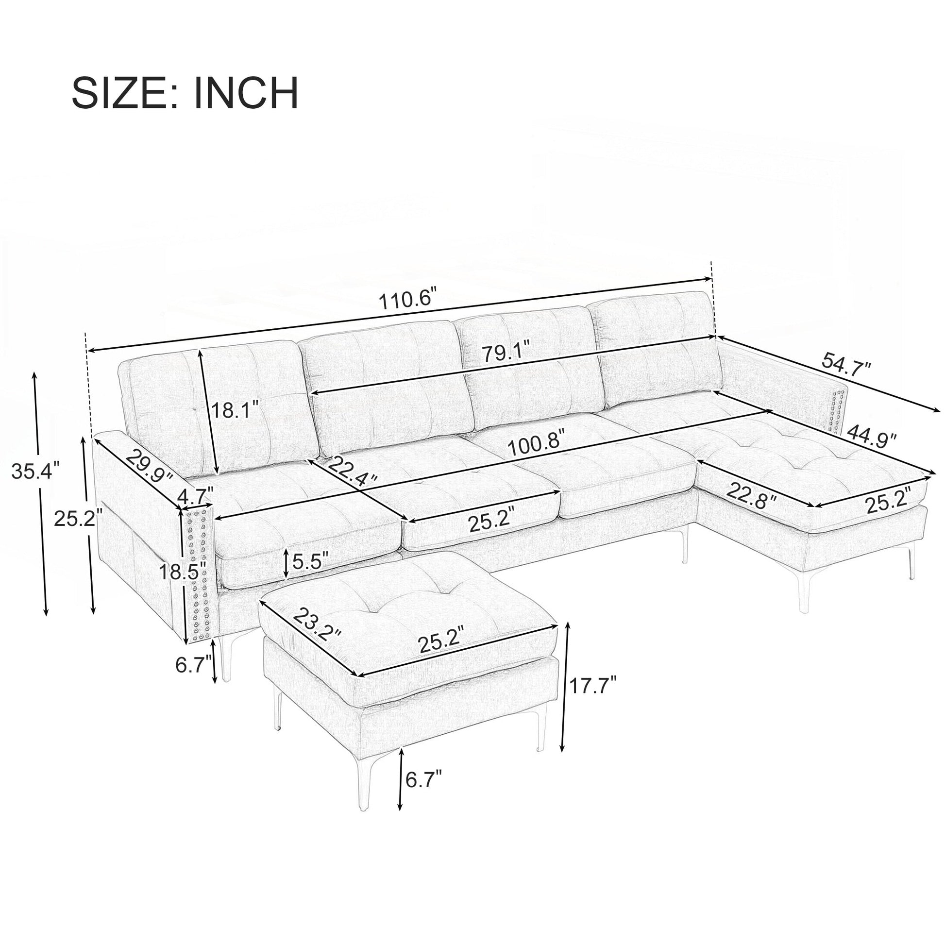 Divano componibile convertibile a L da 110 pollici