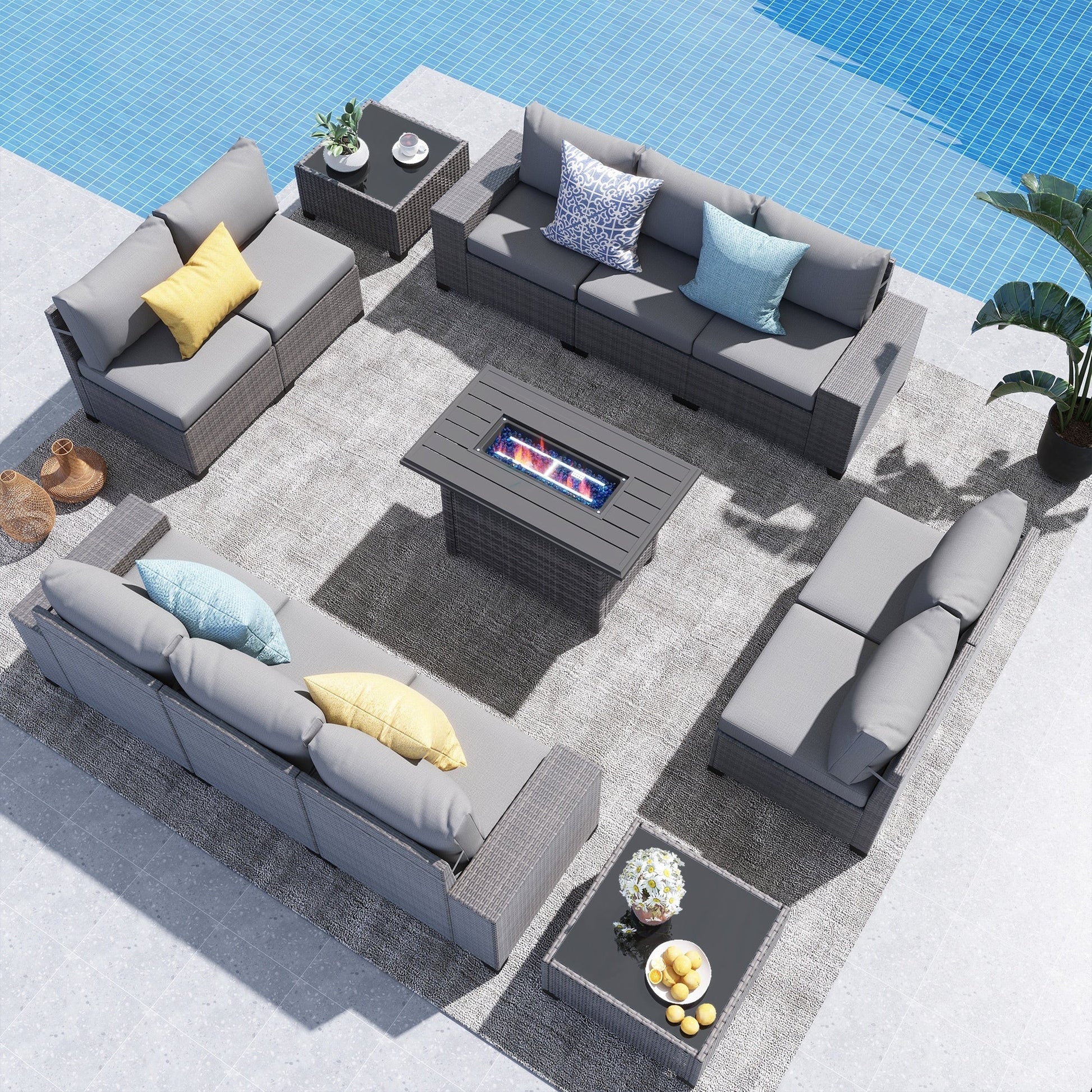 Questo set di divani in rattan da 13 pezzi è progettato per arricchire il tuo tempo libero all'aperto. Il nostro set comprende 10 sezioni, 2 tavolini da caffè e 1 tavolo con braciere, creando un'ampia area salotto comoda e pratica per te e la tua famiglia.