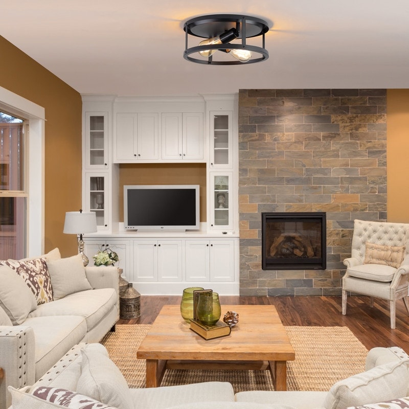 La plafoniera da soffitto in stile fattoria da 2 luci è realizzata in metallo di alta qualità, con finitura nera resistente alla ruggine e alla corrosione, il design aperto consente alle lampadine esposte di brillare intensamente, inoltre non c'è vetro da pulire, rendendo più semplice la sostituzione delle lampadine.
