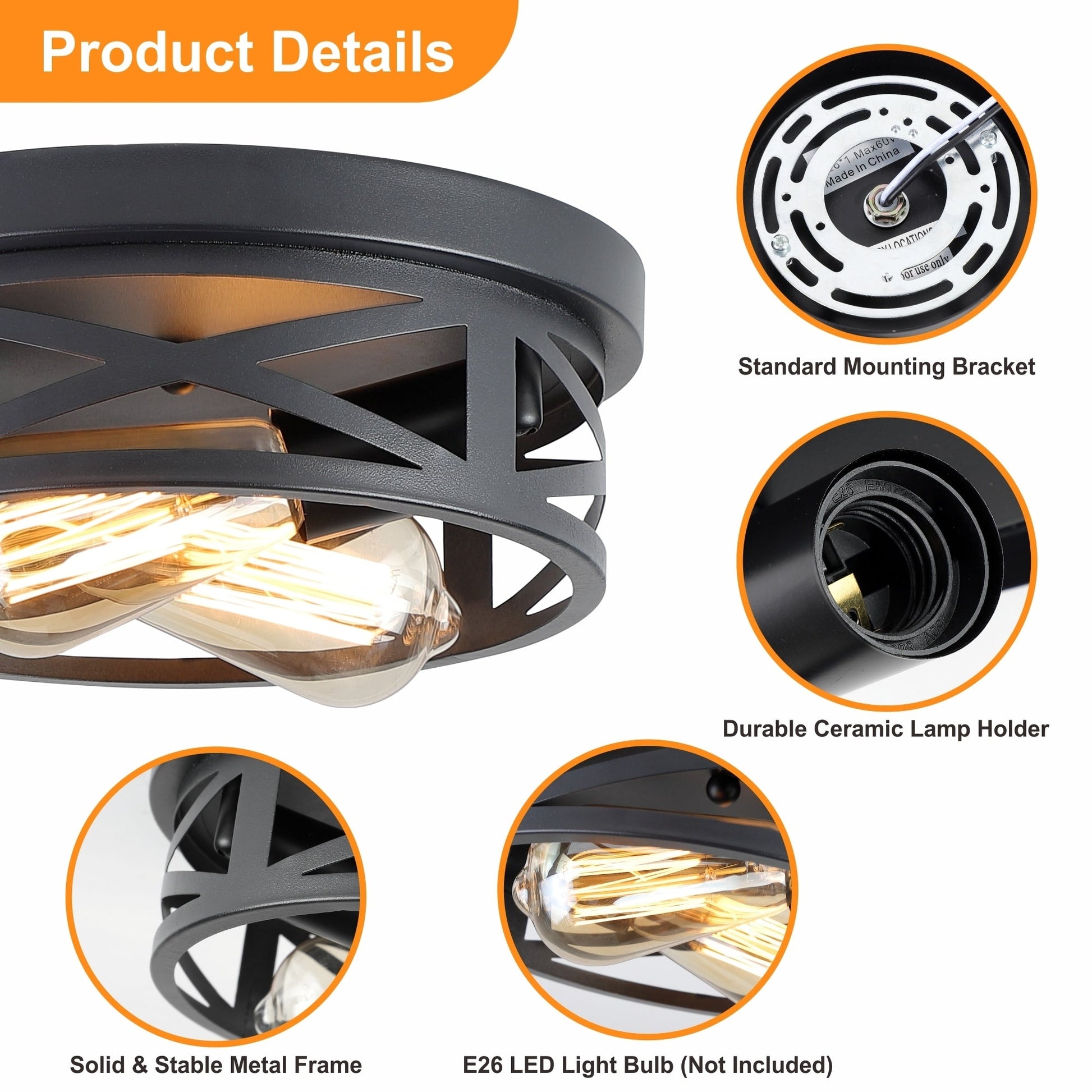 • Attacco E26 medio, compatibile con lampadine LED, a incandescenza o CFL Edison e altro ancora (lampadine non incluse)