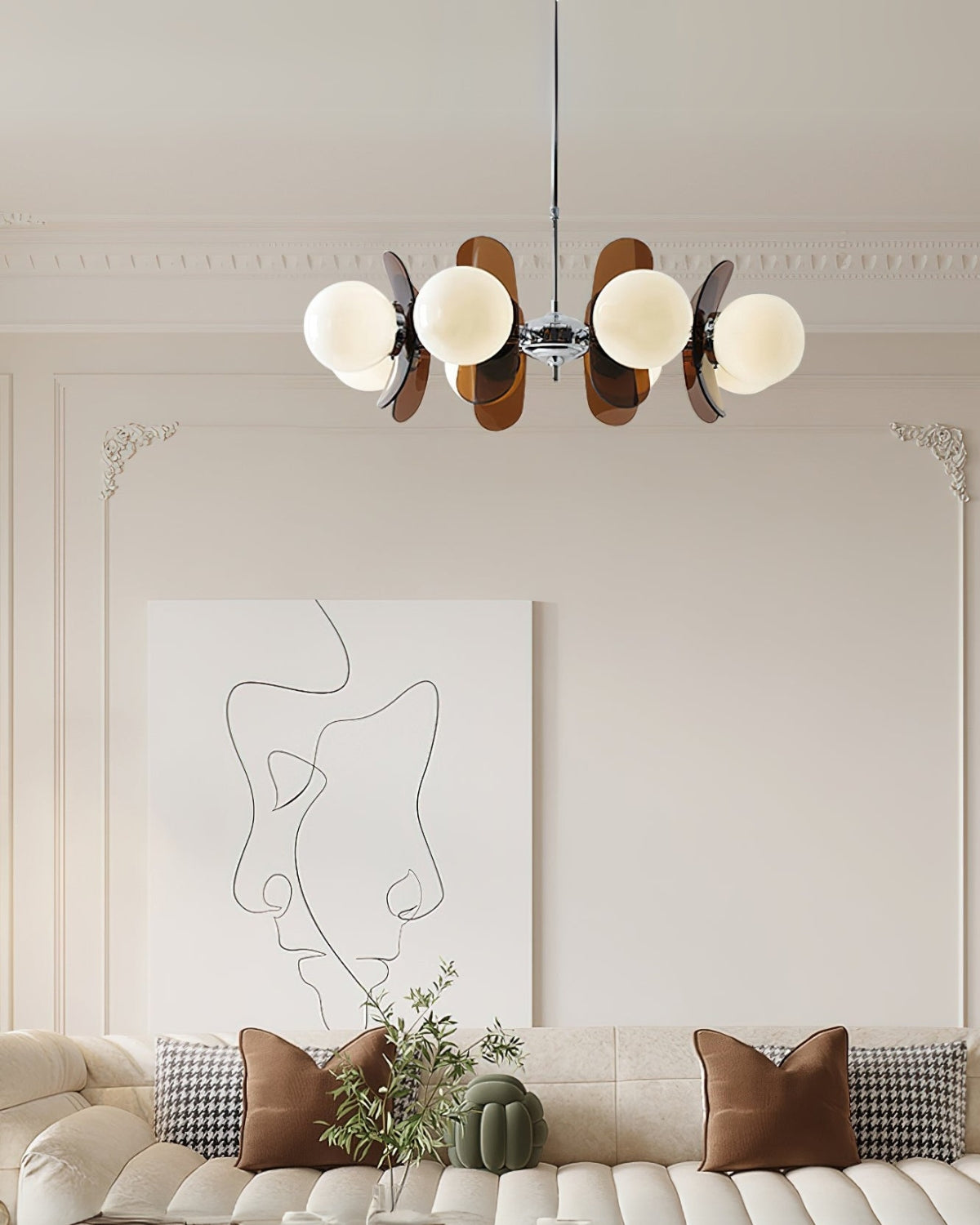 Valorizza la tua casa con Le Solène , un magnifico lampadario che fonde armoniosamente la raffinatezza moderna con un fascino senza tempo. Ispirato all'iconico stile Bauhaus, questo straordinario pezzo presenta un mix di sfere in vetro satinato ed eleganti dettagli metallici, creando un'atmosfera morbida e accogliente che valorizzerà qualsiasi stanza. Con il suo design unico, Le Solène vanta pannelli a strati simili a petali che aggiungono profondità ed eleganza, rendendolo un punto focale straordinario in qualsiasi spazio. La luce calda e invitante delle sue lampadine a LED non solo illumina la stanza, ma trasforma anche l'atmosfera, offrendo un ambiente raffinato e accogliente.