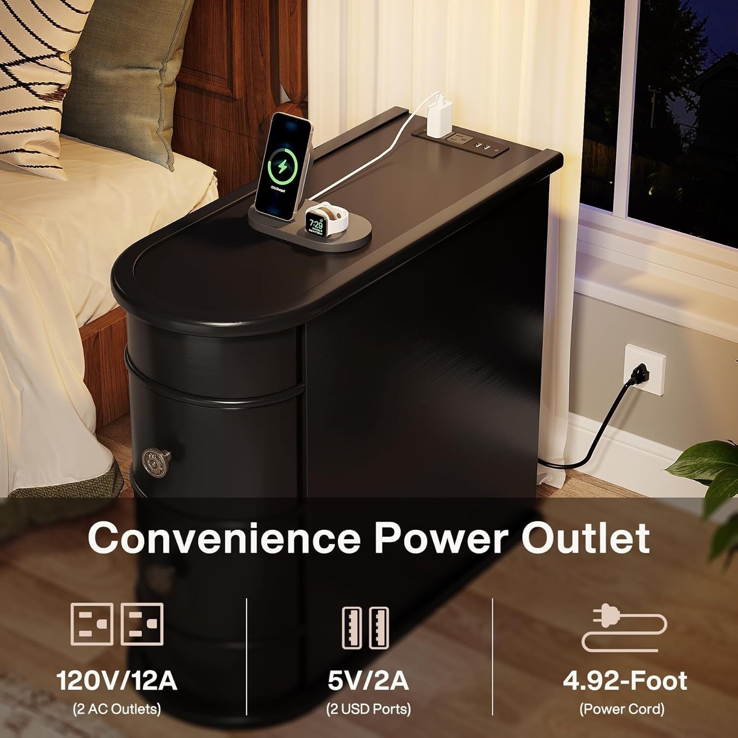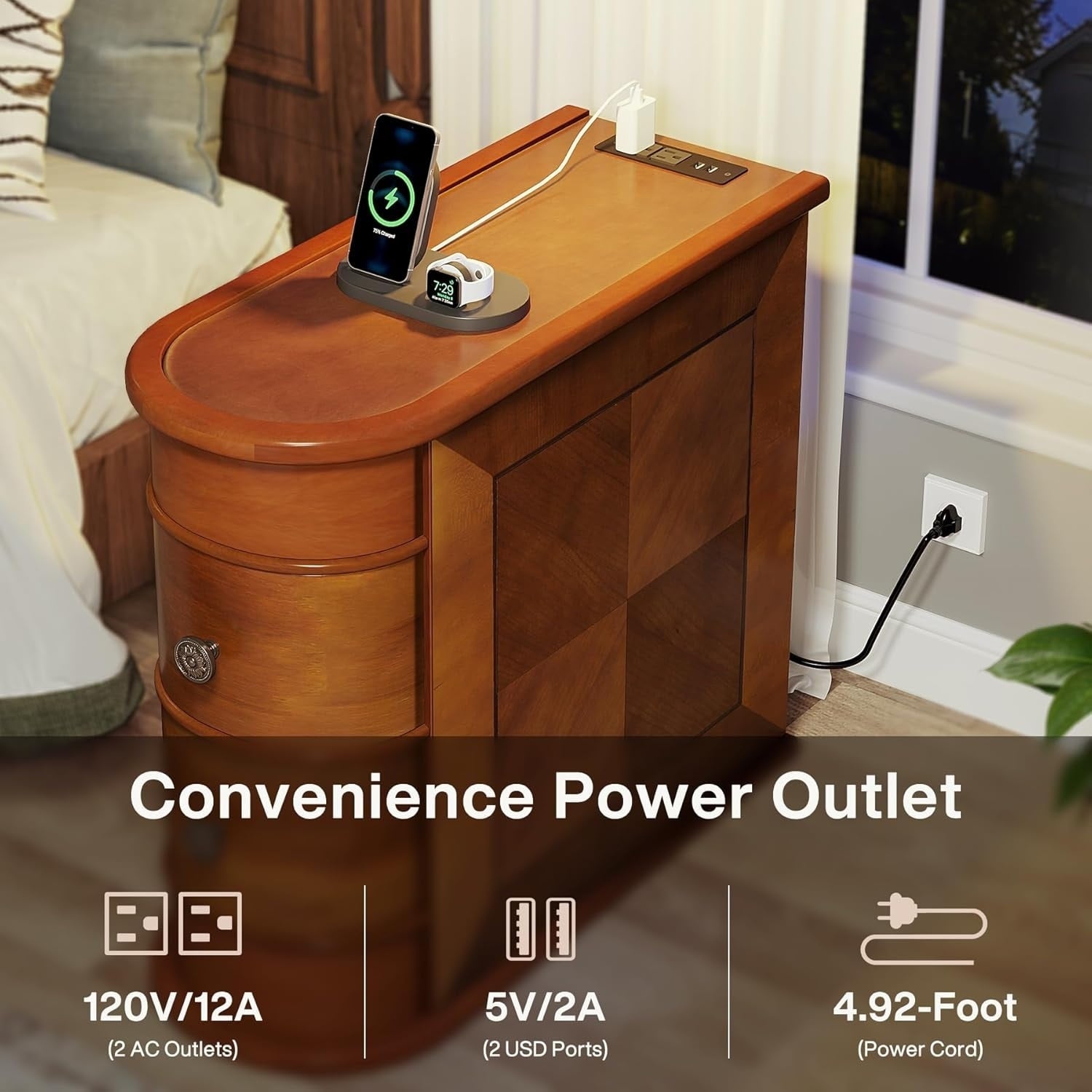 Tavolino laterale in legno massello, tavolino stretto a...
