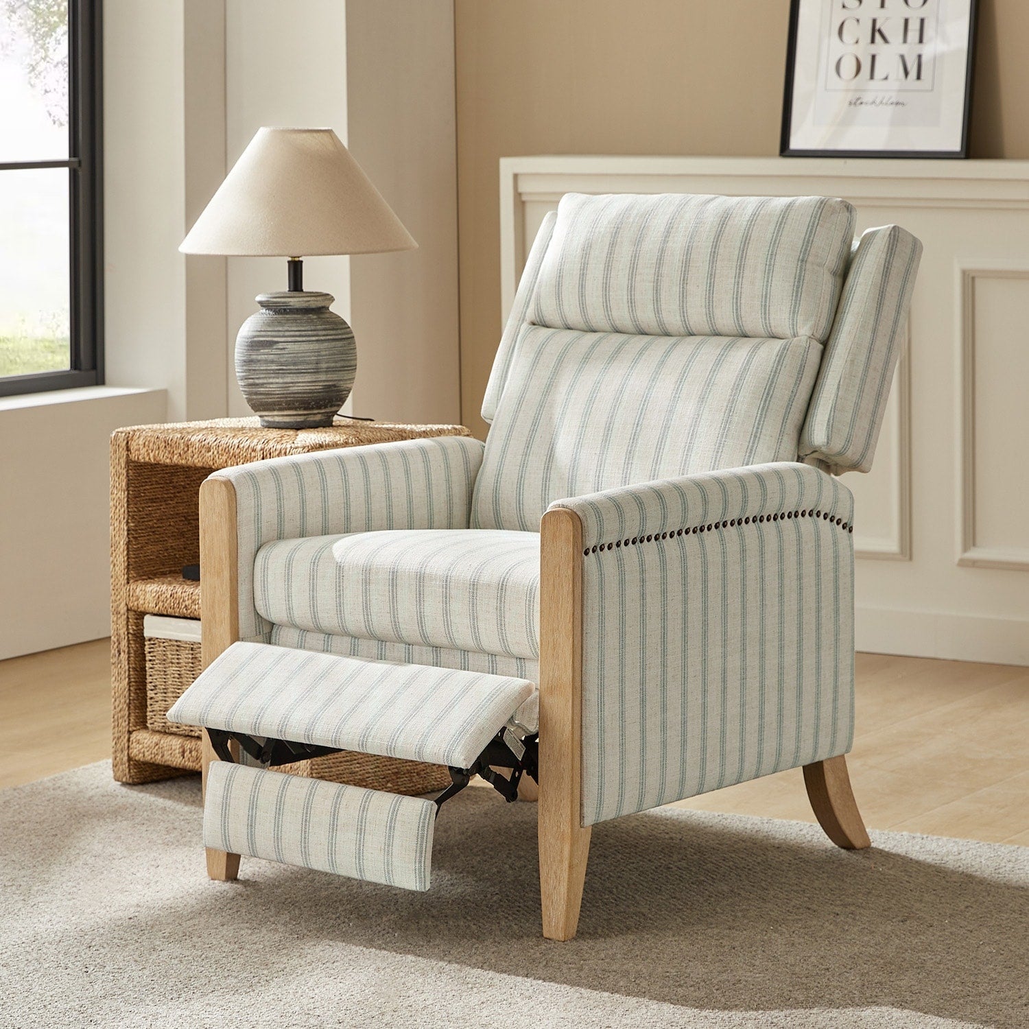 Poltrona reclinabile manuale Suares Transitional Nailhead con gambe...