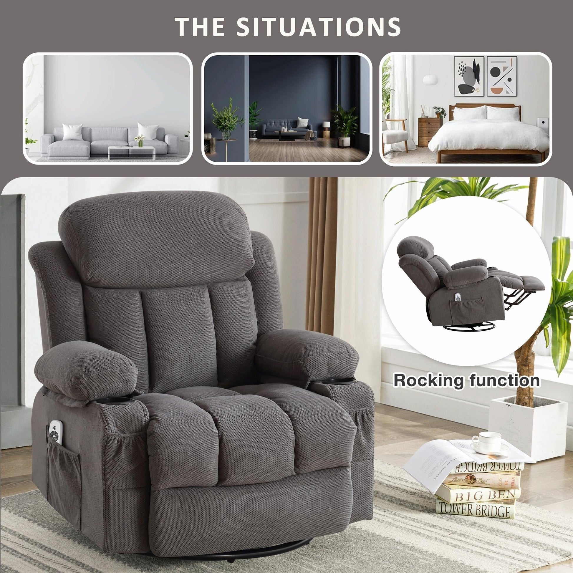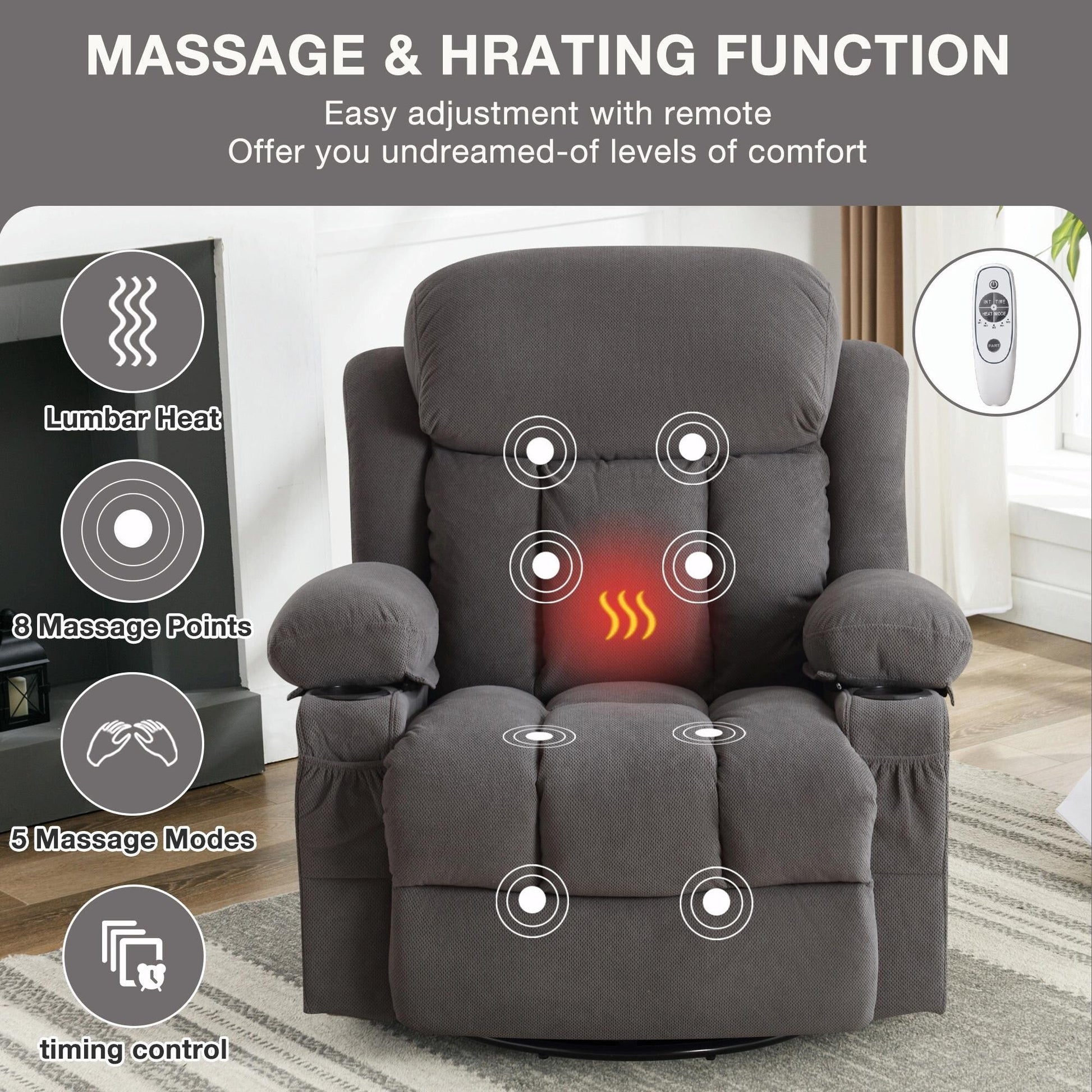 Divano reclinabile oscillante con massaggio riscaldato, con USB...