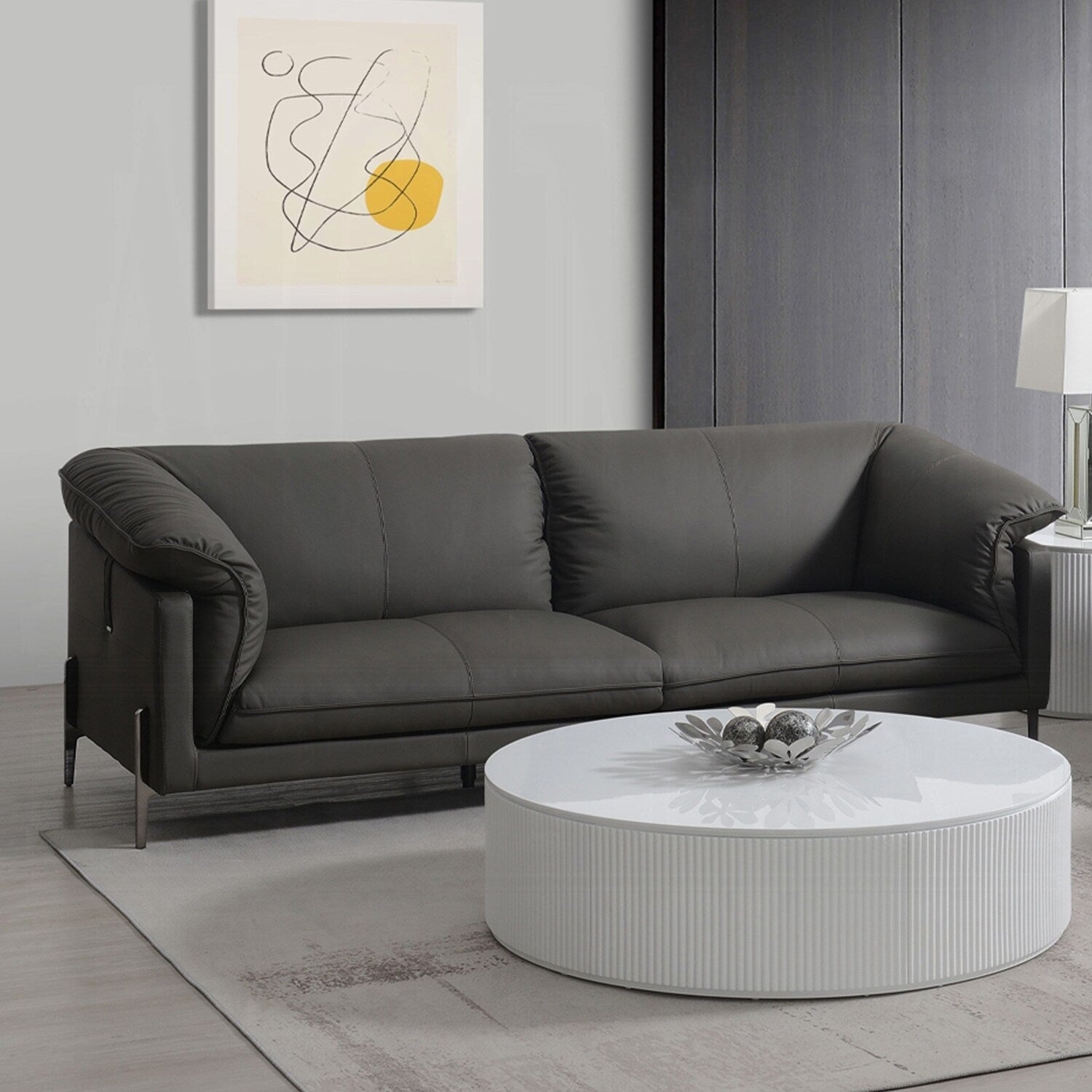 Divano rivestito in pelle pieno fiore con gambe...