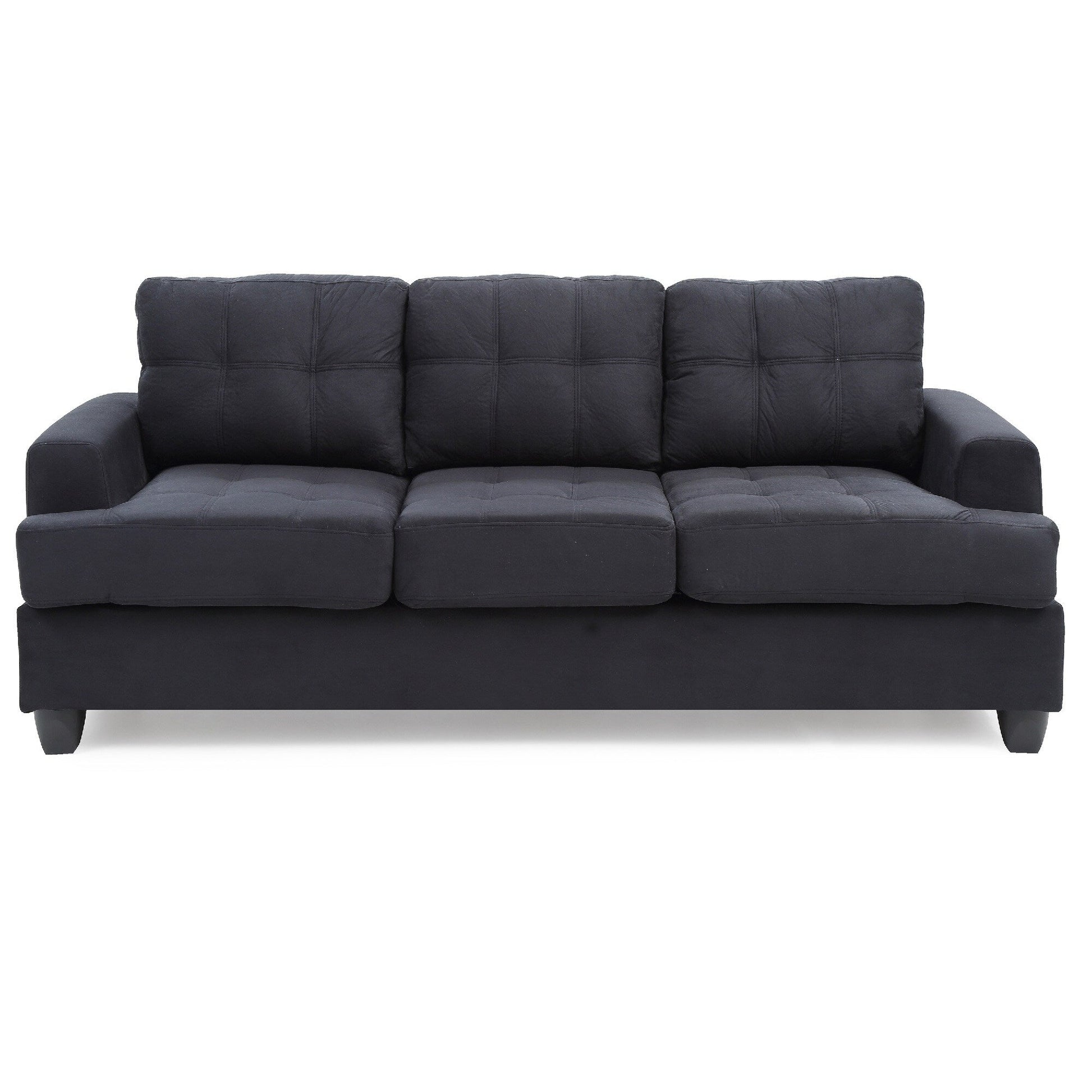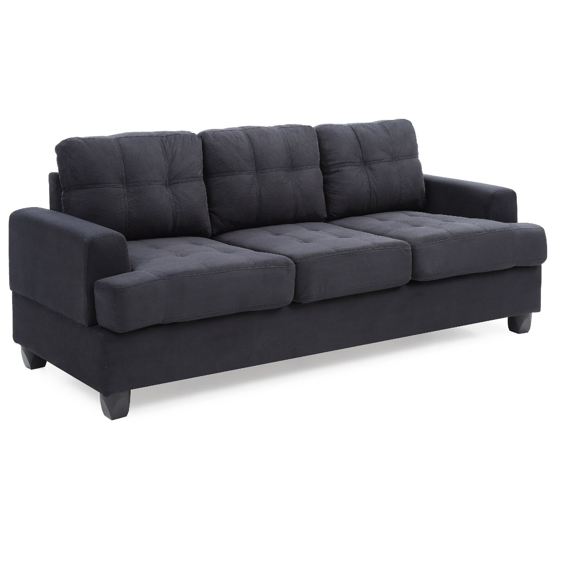 Divano dritto con braccioli quadrati in microsuede trapuntato - 79 - Nero