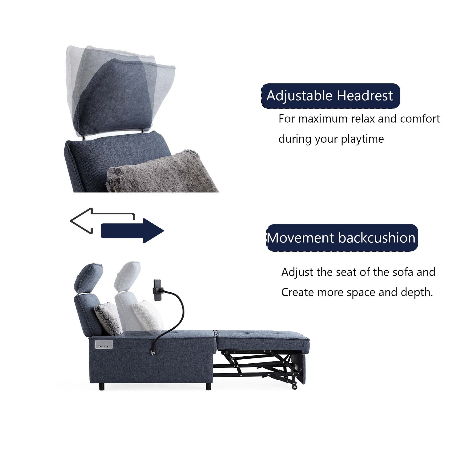 • Design convertibile 3 in 1: questa poltrona con altoparlante e divano letto reclinabile combina le funzionalità di un divano, di un letto e di una poltrona reclinabile, rendendola un'aggiunta versatile al tuo spazio abitativo. Può essere facilmente convertita in base alle tue esigenze, che tu voglia rilassarti, dormire o divertirti.