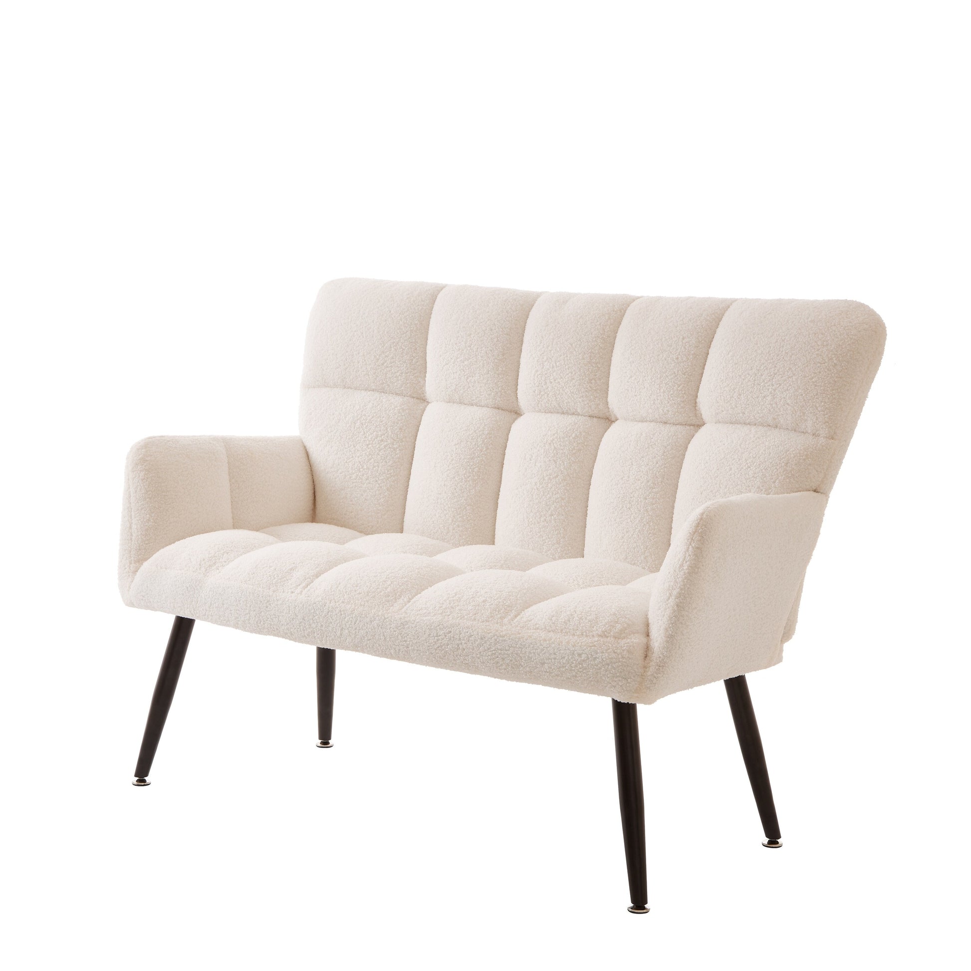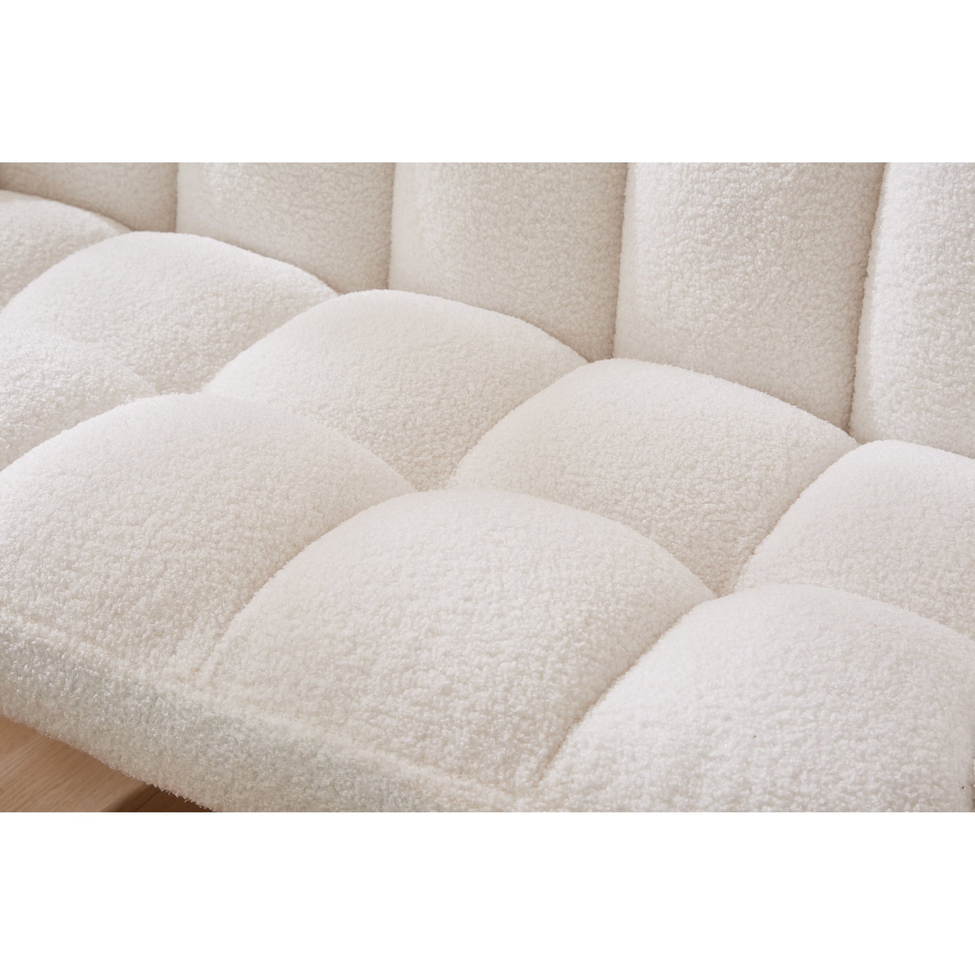 Divano a due posti Teddy bianco da 52 pollici con schienali trapuntati e struttura in legno massello per il soggiorno.