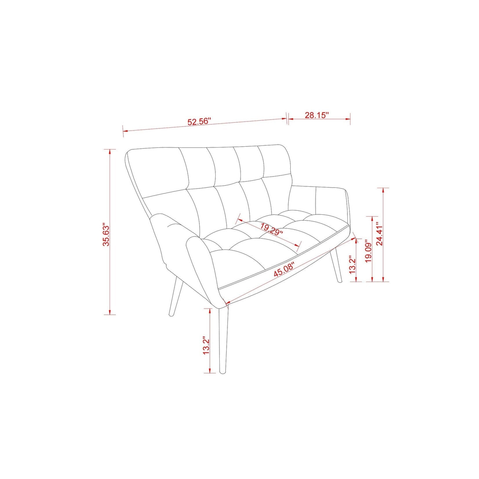 • Dimensioni: 52,56' L x 28,15' P x 35,63' A. Altezza seduta: 35,63', Profondità seduta: 19,29'. Poiché si tratta di un piccolo divano a due posti, si prega di verificare che le dimensioni soddisfino le proprie esigenze prima di ordinare.