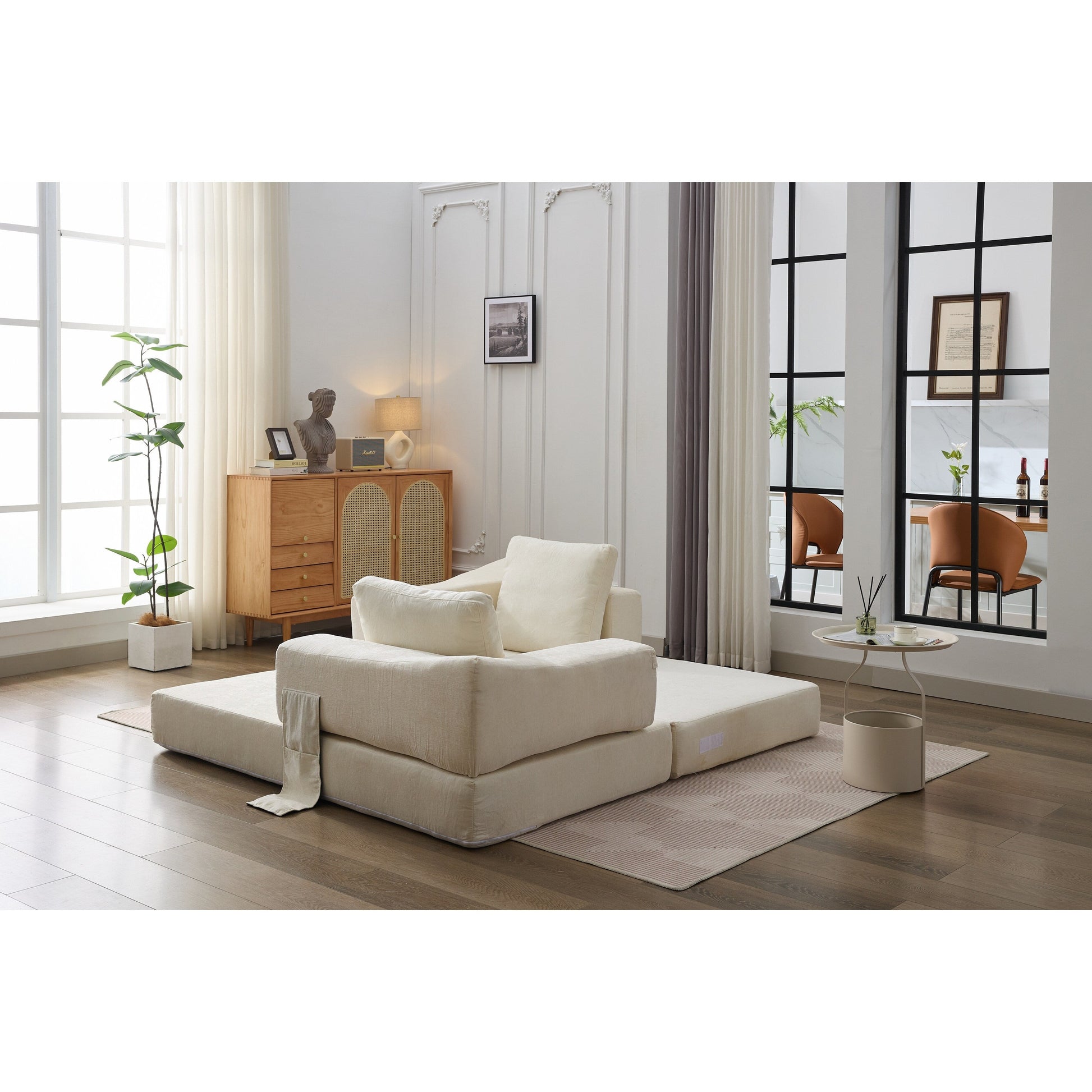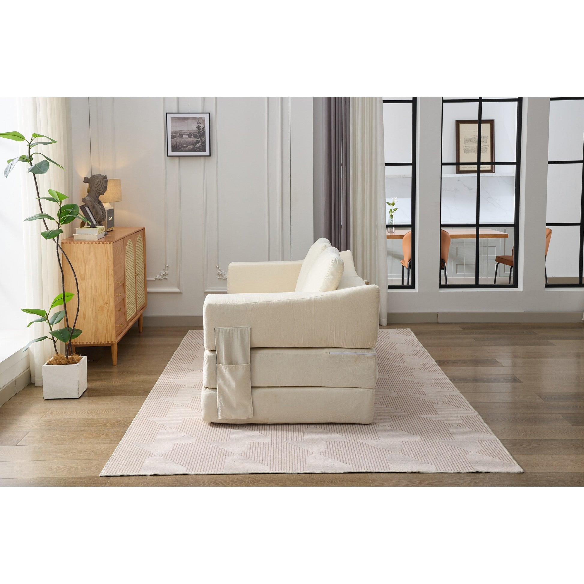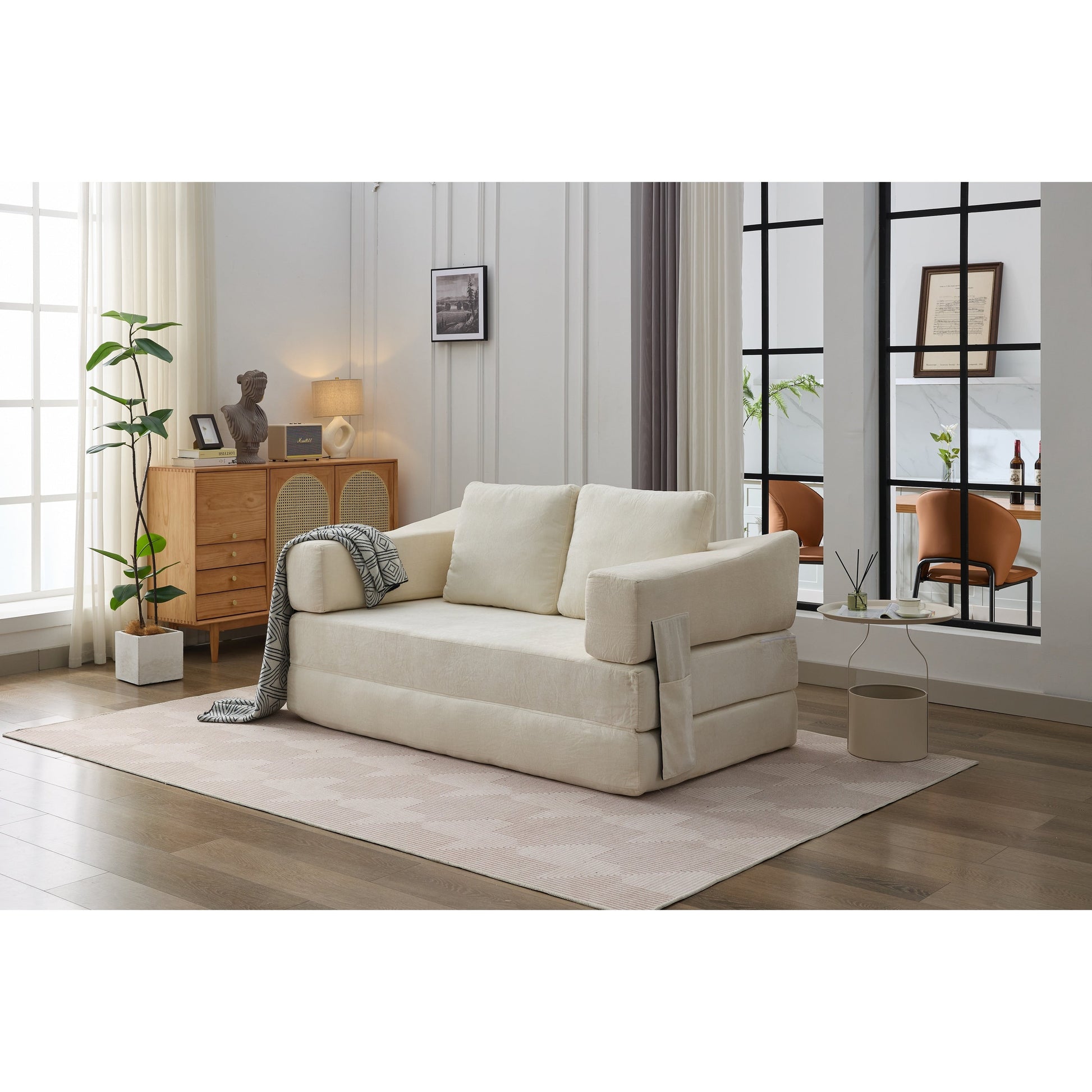 Divano letto pieghevole in ciniglia bianca